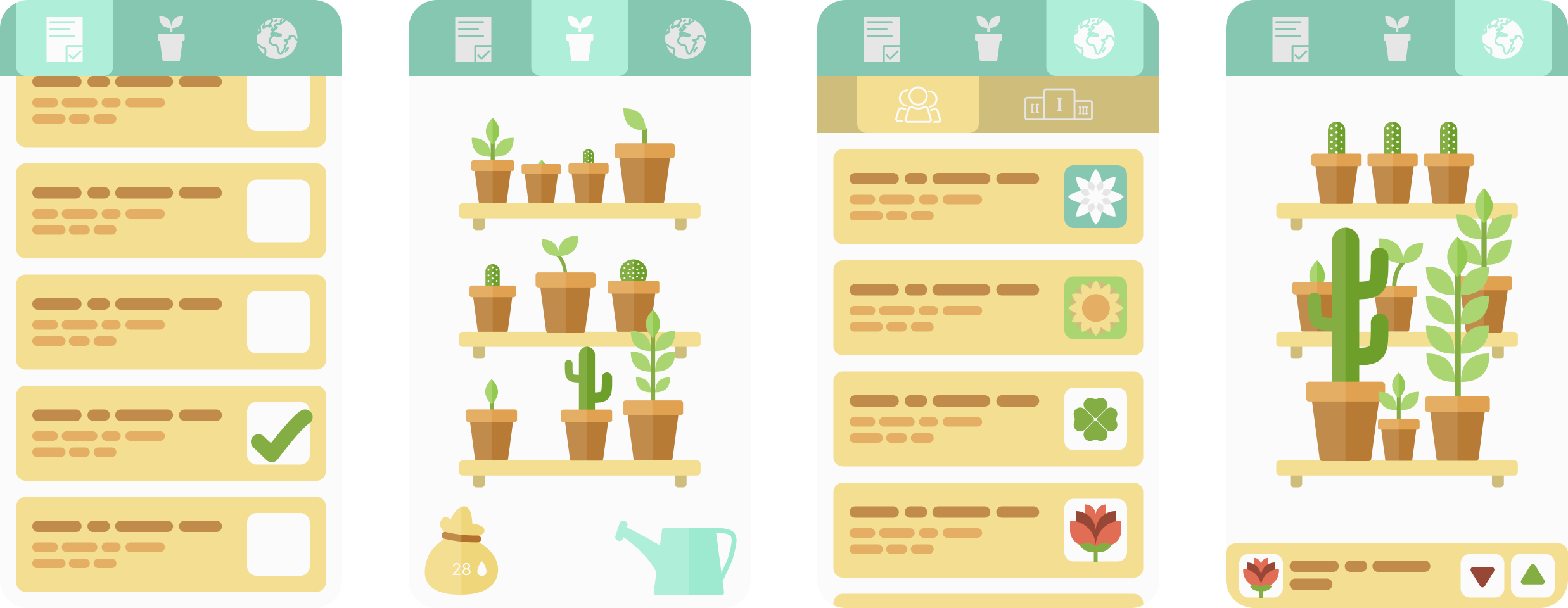 Additionally, our target users love competition and peace simultaneously, a gamified app where user does real-life tasks to grow their virtual garden seemed like a logical solution. A leaderboard system was created with the idea that it could increase the amount and quality of actions of the users. However, we decided to add that touch of harmony by basing the leaderboard on the beauty of your garden and not only the tasks you accomplish. This way we managed to create a balance between performance and peace.